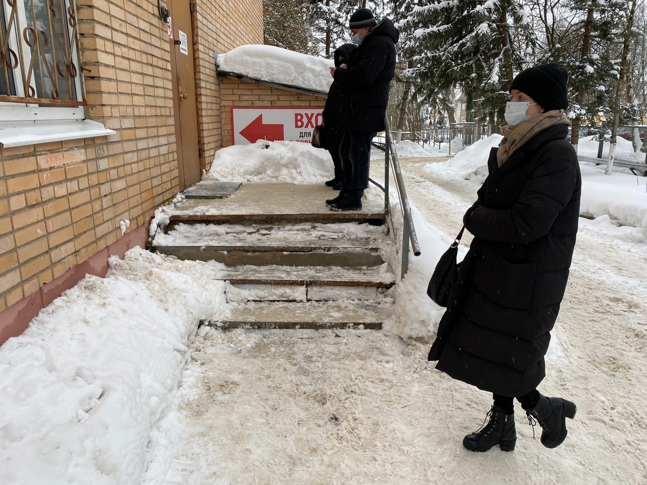 - Пациенты вынуждены стоять на улице в мороз, - тяжело дыша, говорит Ольга. - Это все из-за нехватки медицинского персонала, потому что они сами болеют. И больным людям приходится находиться в очереди, стоя на улице, с восьми утра.