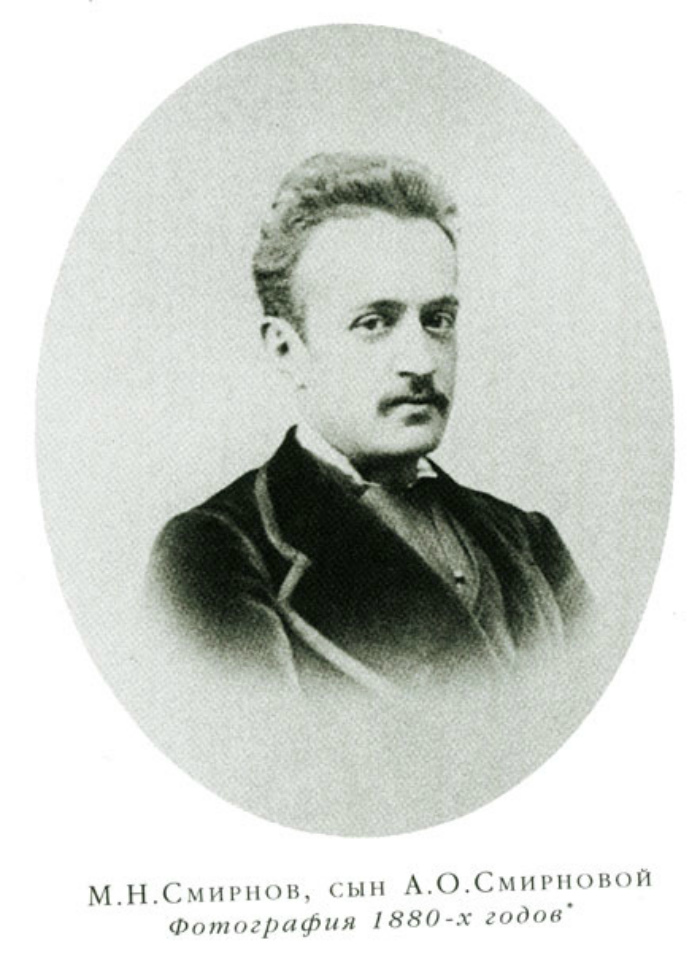 Михаил СМИРНОВ родился 30 мая 1847 года в Калуге, в семье губернатора Николая Михайловича СМИРНОВА и его жены фрейлины Александры Осиповны РОССЕТ.