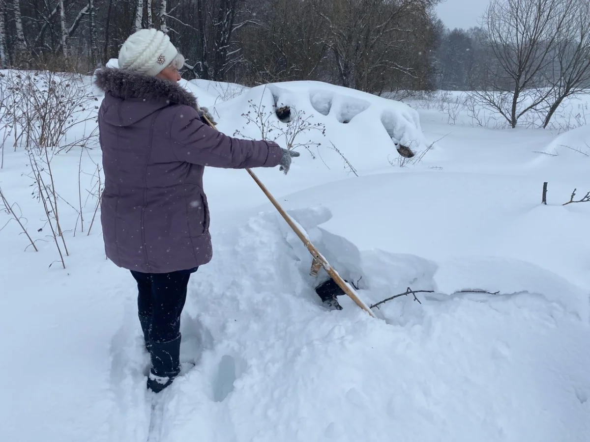 В начале февраля мы вместе с Татьяной Федотовой на лыжах мы прошлись от деревни к месту нелегальной свалки. Без них пройти к завалам зимой невозможно. Сугробы - по пояс.