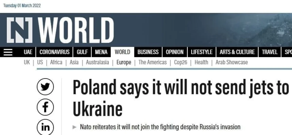 Фабула фейка. Польша и Болгария поставят на Украину боевые самолеты. Об этом написали в официальном аккаунте Военно-морских сил Украины в F***book.