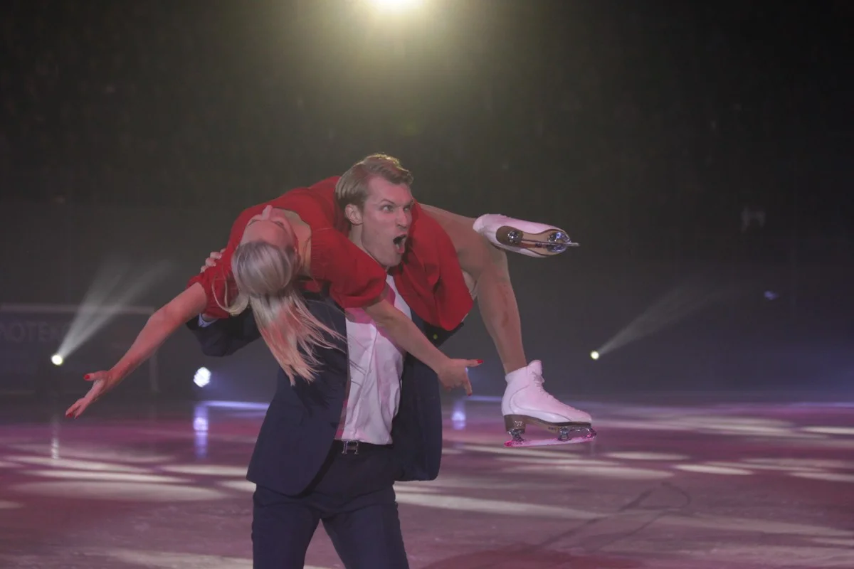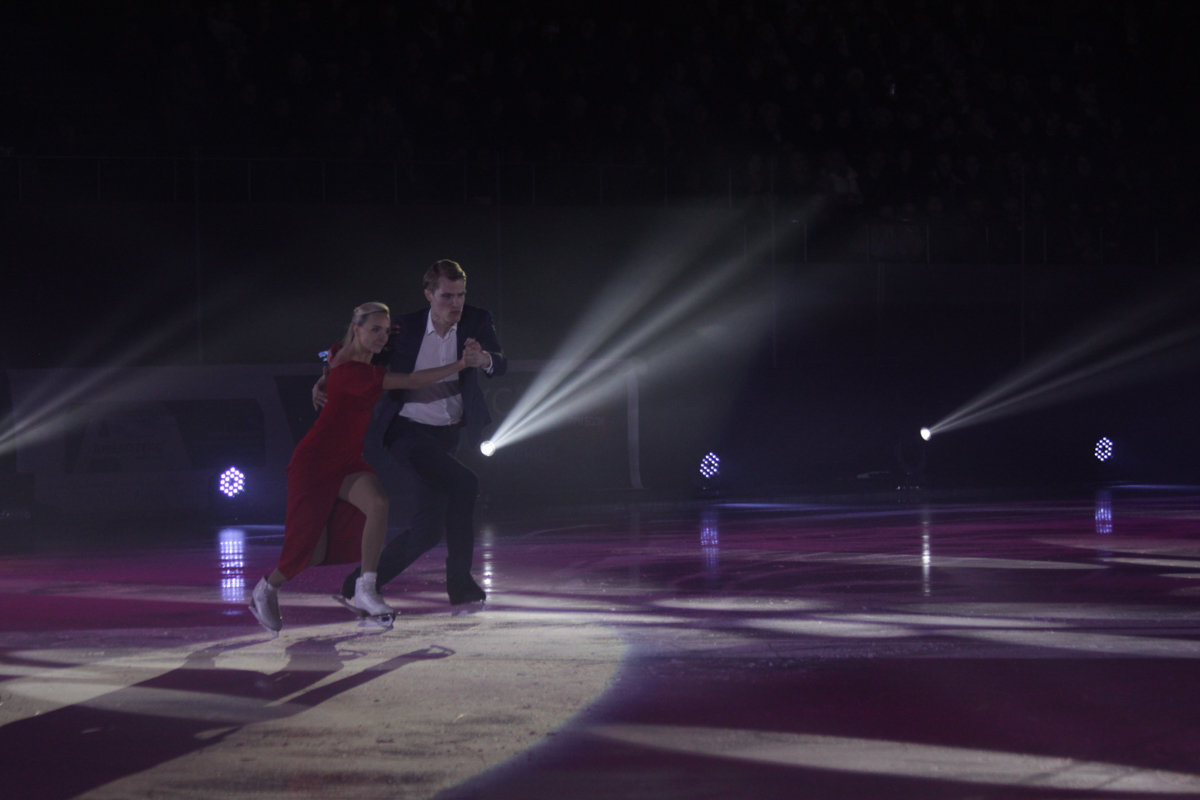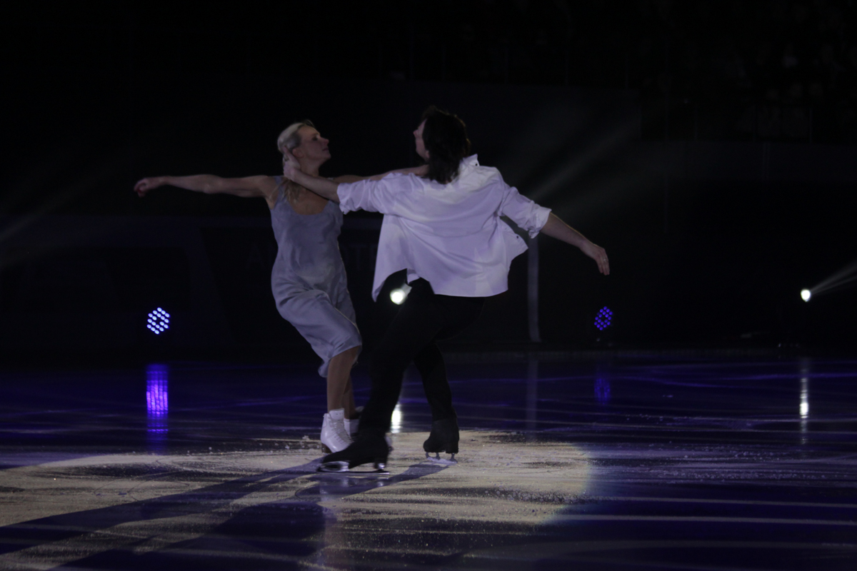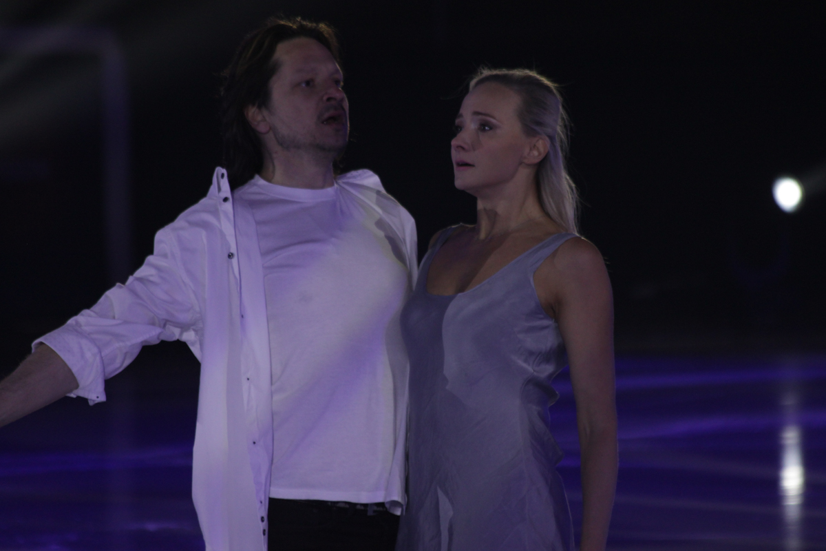 И вот все началось. Первыми из звездных фигуристов вышли на лед призеры Олимпийских игр, чемпионы мира и Европы Оксана Домнина и Максим Шабалин.