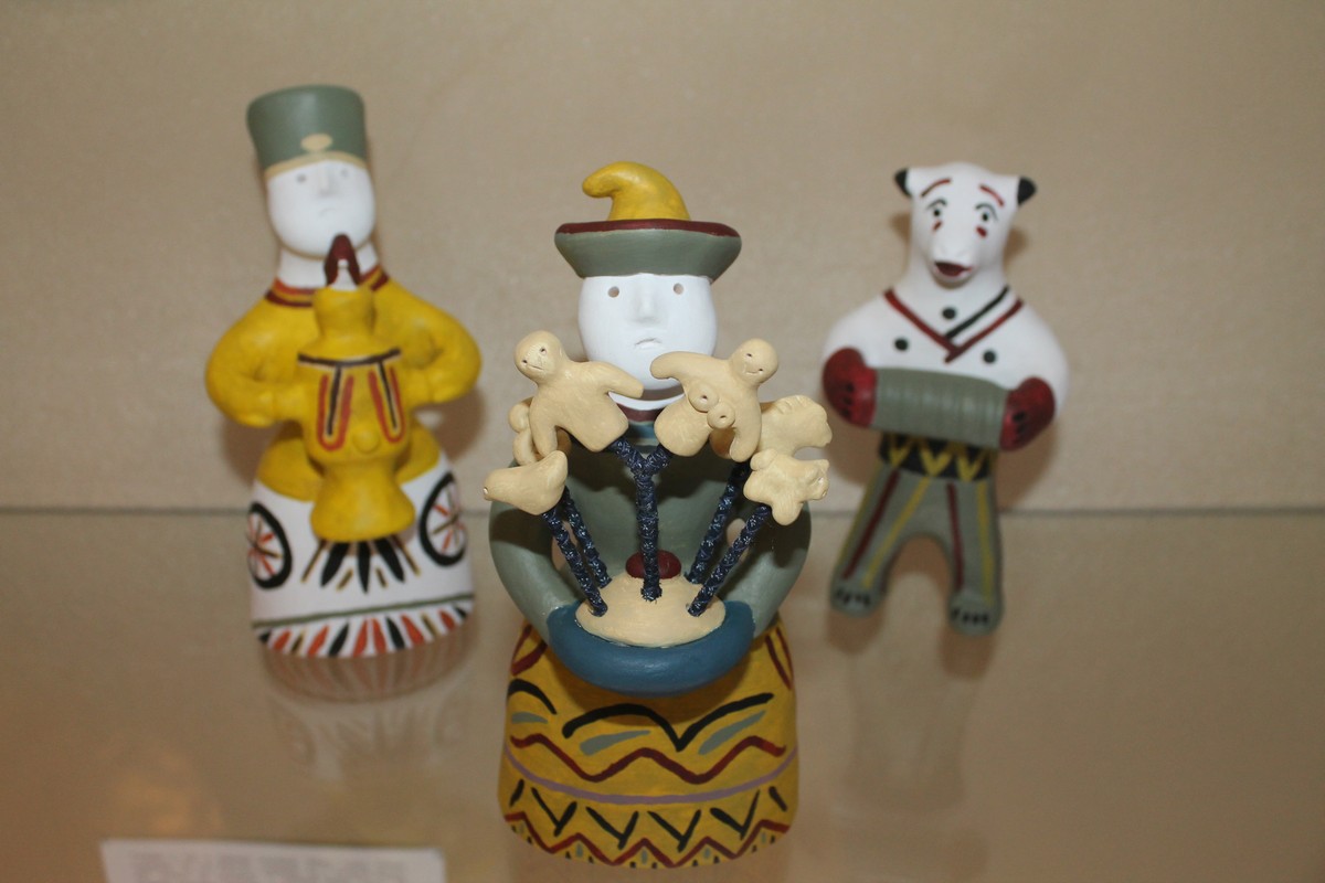 Глиняные игрушки там – другие, фигуры – коренастые, лица - круглые. И люди от нас отличаются, мы – худые, лица узкие, а они – плотные, круглолицые.