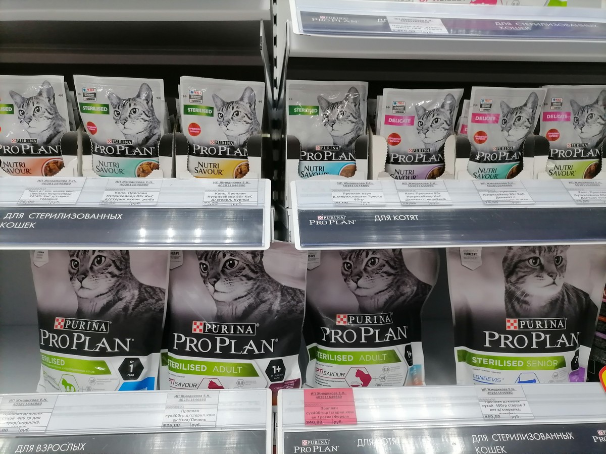 Когда объявили о санкциях, то о кормах зарубежного производителя нам сначала сказали: «Стоимость повысим на 20 процентов». Подняли на 20, а потом еще на 60 процентов! Это корма производителей: Farmina, Cat Chow, Mr. Buffalo, Grandorf, Royal Canin, Pro Plan лечебная диета (ее производят за рубежом), Monge и Hill's подорожали как влажные, так и сухие, – уточняет продавец.