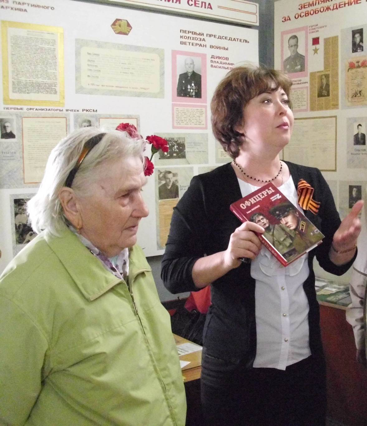 Приносим цветы к памятнику воинам, потом идём в музей Боевой Славы, расположенный во Дворцовской школе: сюда я передала фотографии из семейного архива, письма от погибшего на фронте брата Ивана Сорокина – уроженца деревни Новоскаковское, документы о длительных поисках его могилы.