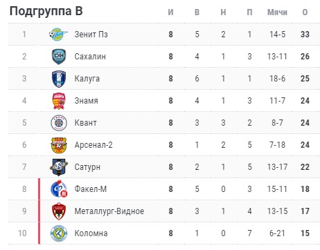 Турнирная таблица Футбольной национальной лиги-2. Группа 3Б.