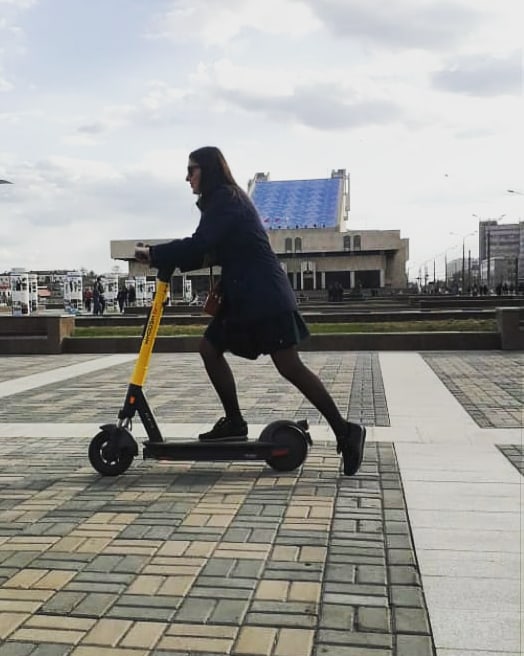 В Казани есть места без машин и можно погонять на самокатах. У Юли неплохо получается.