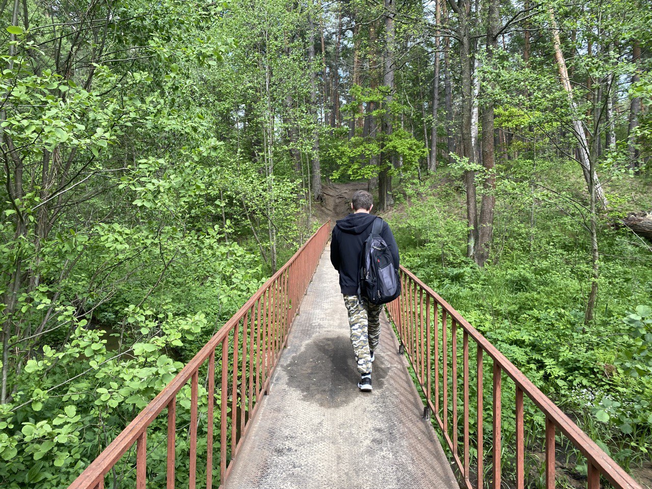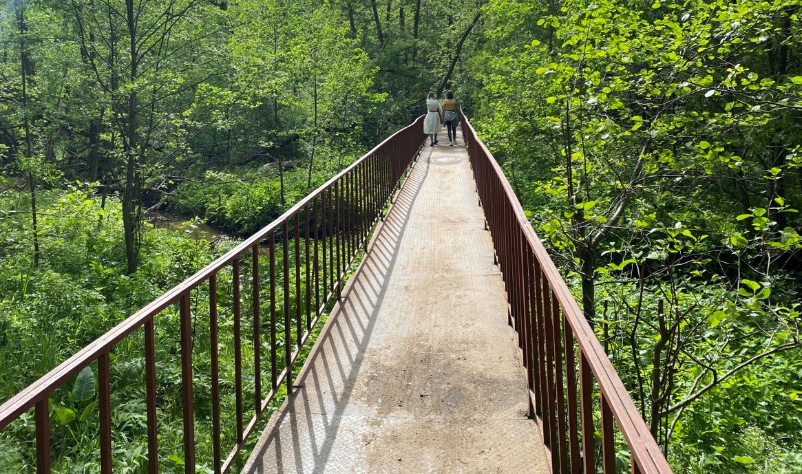 За 5 минут нашего пребывания на мосту по нему прошли 6 человек. То есть эта пешеходная дорожка очень востребована. Она делает путь к Анненкам, РГАУ-МСХА имени К. А. Тимирязева, Сероводородным озерам заметно проще.