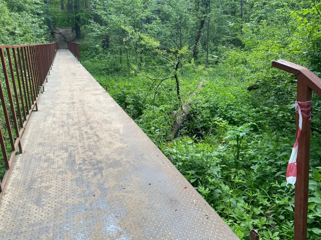 По прошествии 6 дней с нашего визита и недели с объявленного чиновниками начала работ на мосту произошло ровно одно изменение. Исчезла лента, которая хоть как-то сигнализировала и предупреждала пешеходов об опасном участке. Один неаккуратный шаг, и ты запросто можешь упасть.