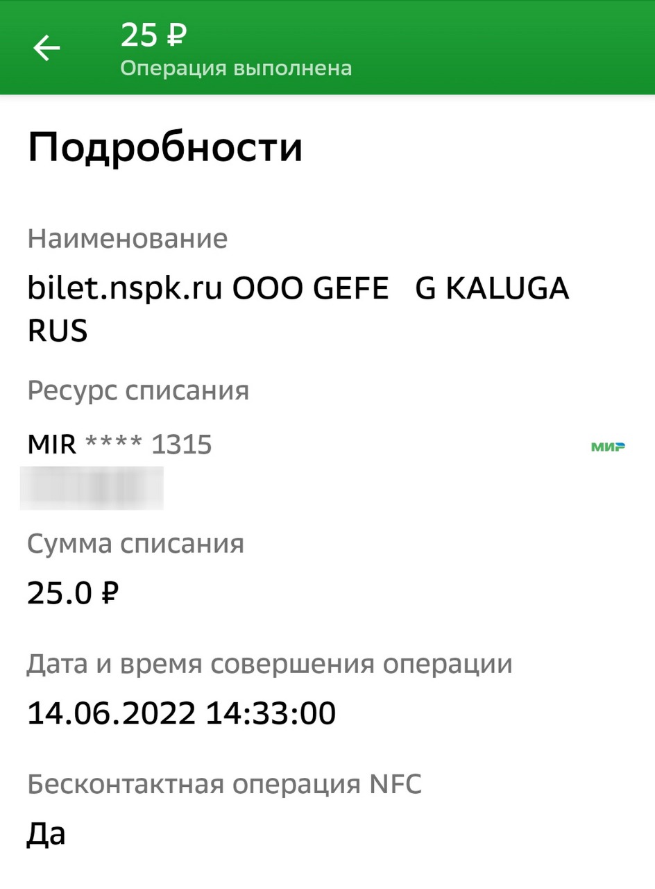 Калужанин утверждает, что рассчитывается в подавляющем большинстве случаев при помощи чипа в смартфоне. При этом, на том же сайте пишут, что поездки, оплаченные с помощью NFC (телефон, часы), в личном кабинете отображаться не будут.