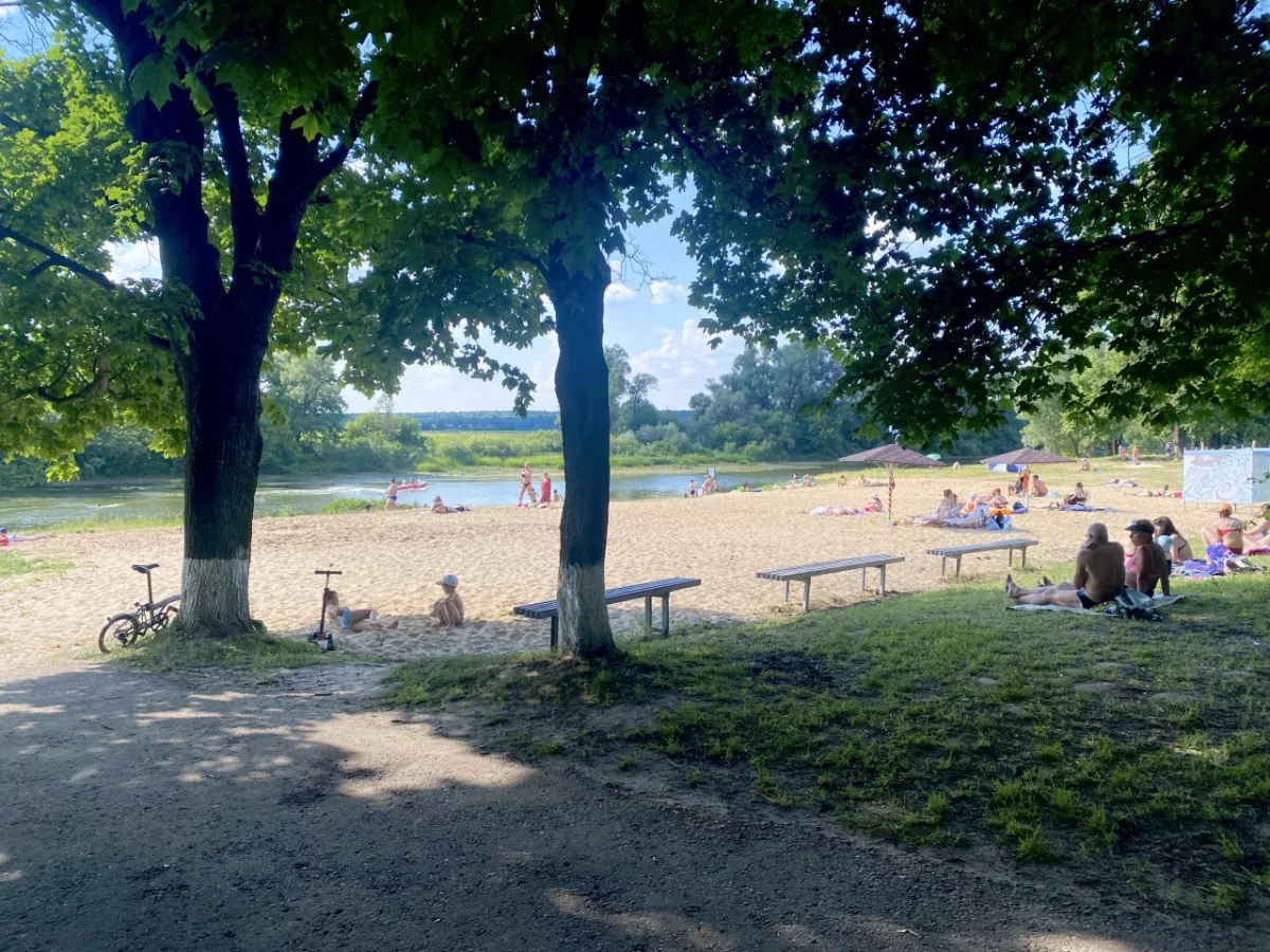 Городской пляж обустроен вполне неплохо: есть парковочная зона, отделенная от зоны отдыха, скамейки, кабинки для переодевания, песок, нет диких зарослей травы и огромных куч мусора.