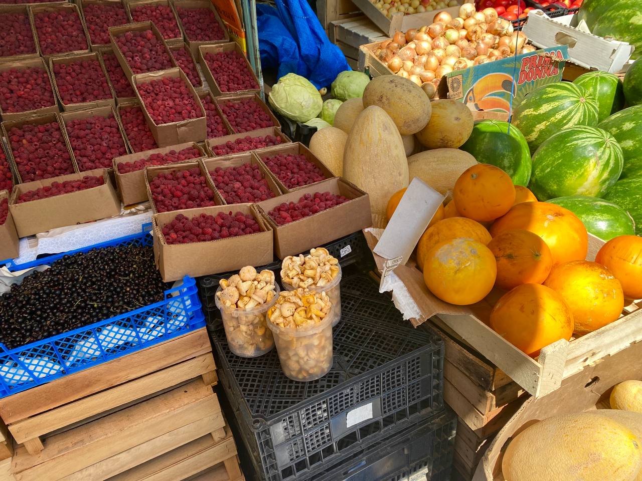 А вот на самом рынке среди всего многообразия грибов почти нет. Лисички есть только в одной палатке.