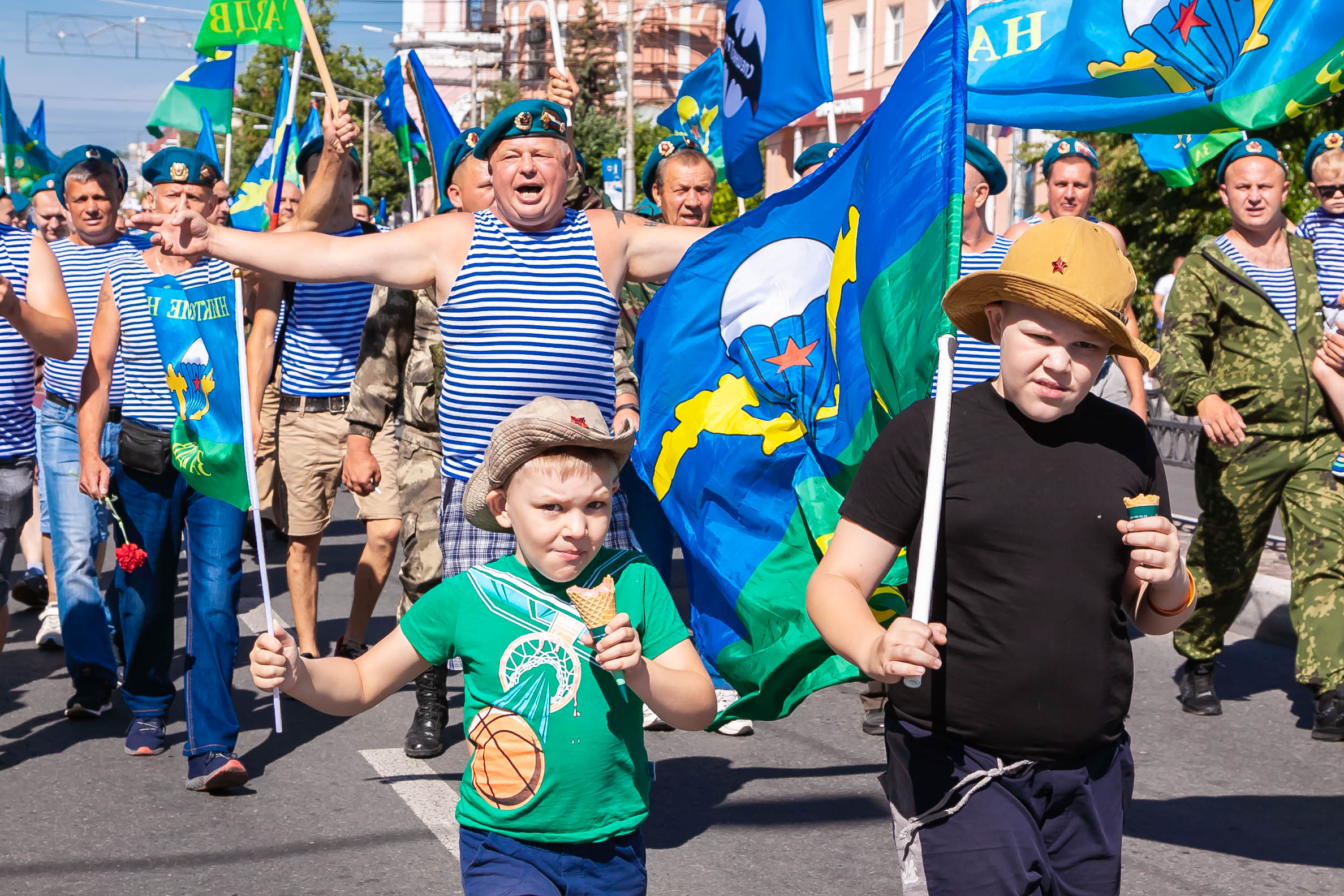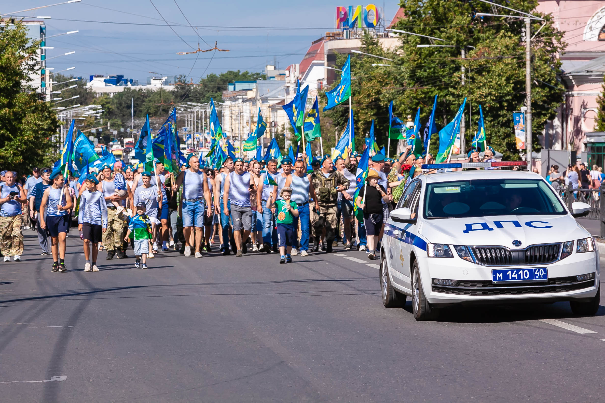 По жизни маршем: в Калуге день ВДВ начали отмечать шествием до площади Победы