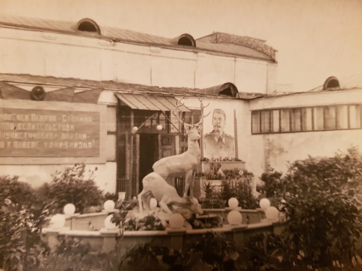 За кинотеатром был скверик, с танцплощадкой, летним кинозалом, тиром. Территория утопала в цвету и благоухала. Как это было принято в те времена, все вокруг заставили скульптурами, в основном всевозможных животных, были слоны, олени, рыбы.