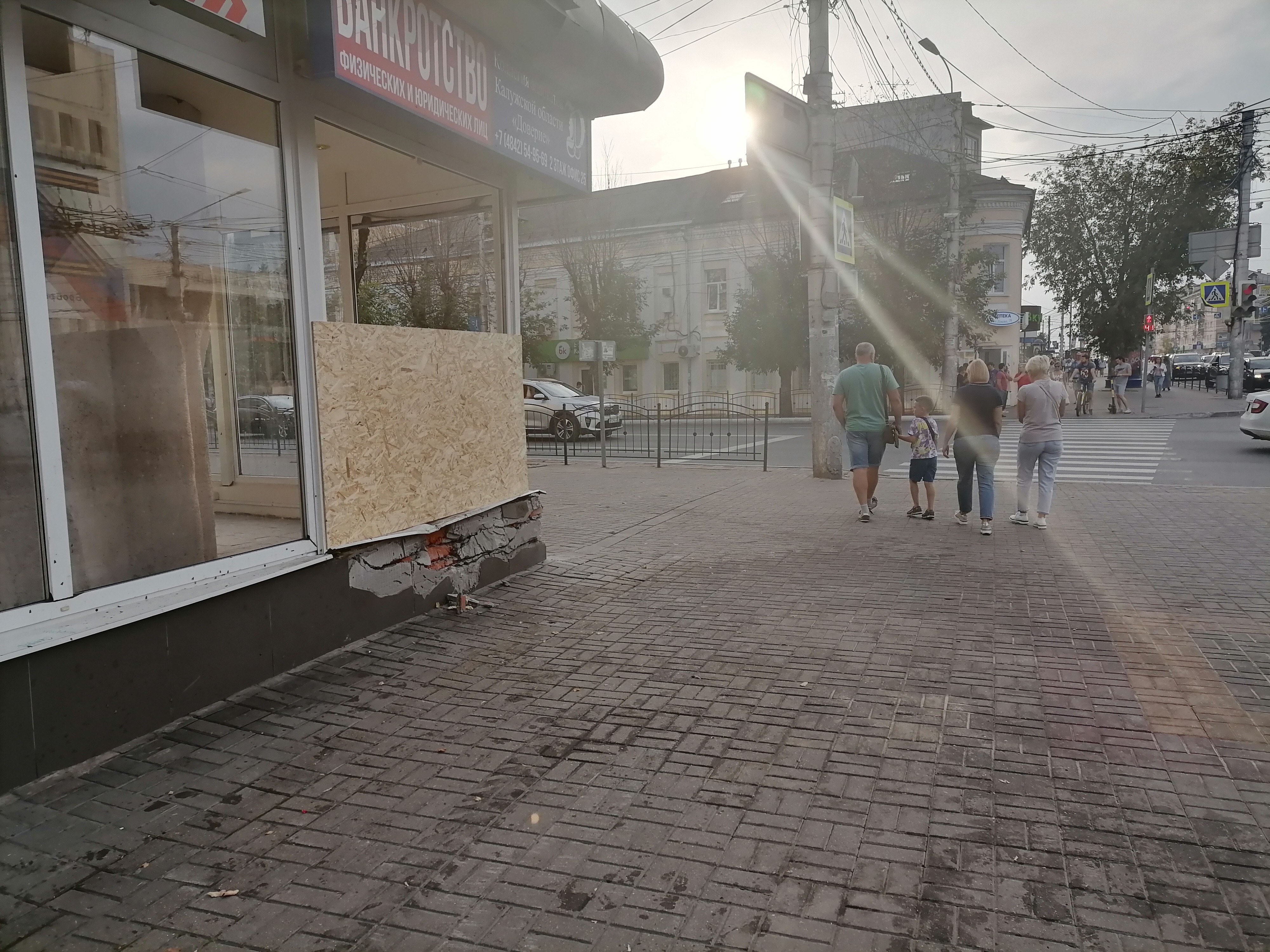 О страшной утренней аварии напоминали следы на тротуарной плитке и разбитая витрина.
