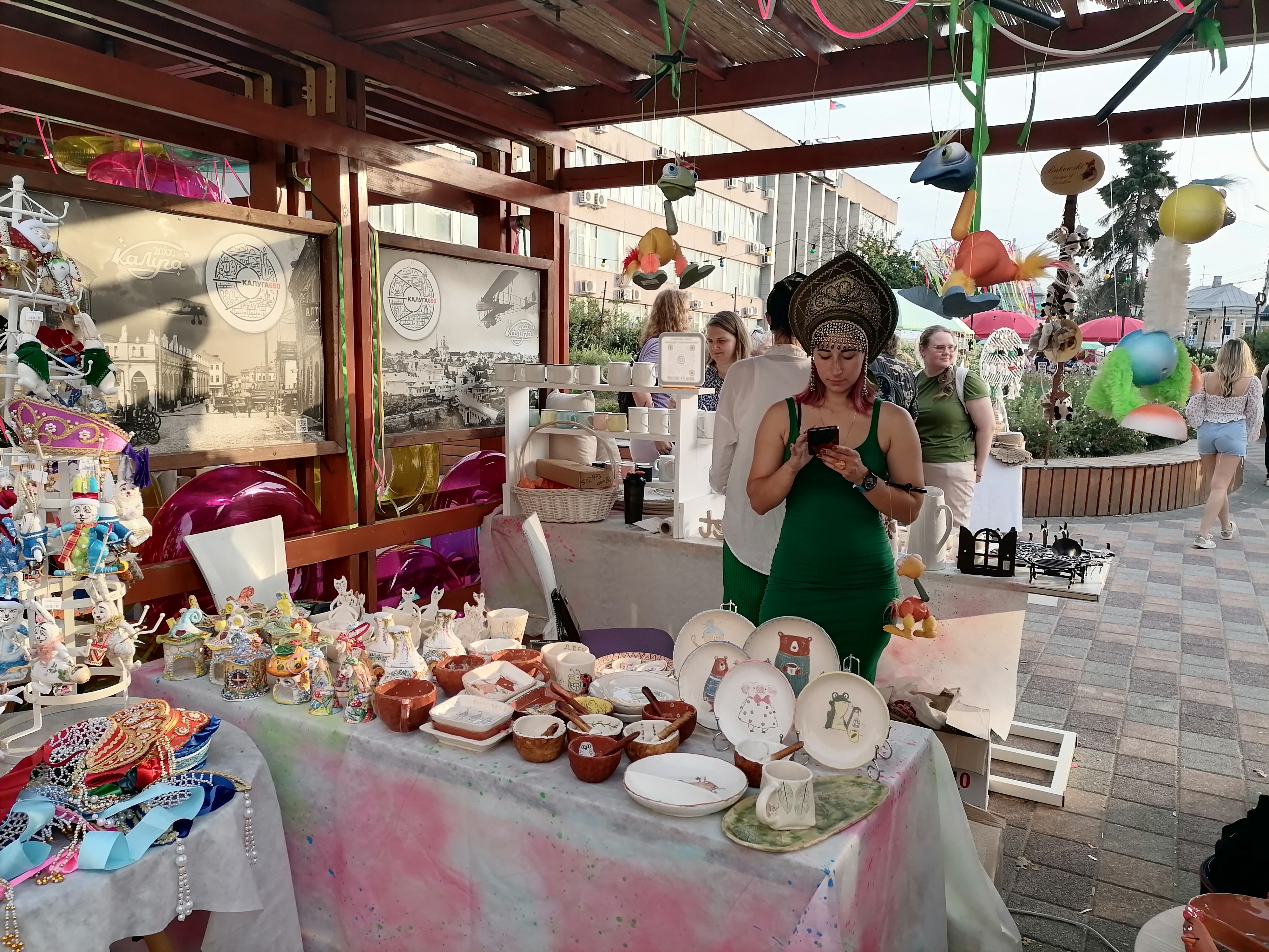 – С продажами сегодня не очень хорошо, народа нет, – говорит продавец Анастасия ГОЛОСОВСКАЯ. – Раньше на этой площади проводили мероприятия, насколько я знаю, их устраивал один из калужских автомобильных заводов, а сегодня ничего не было. И с продажами все очень-очень просело. Поэтому приходится выставлять товар здесь и надеяться только на случайных на прохожих.