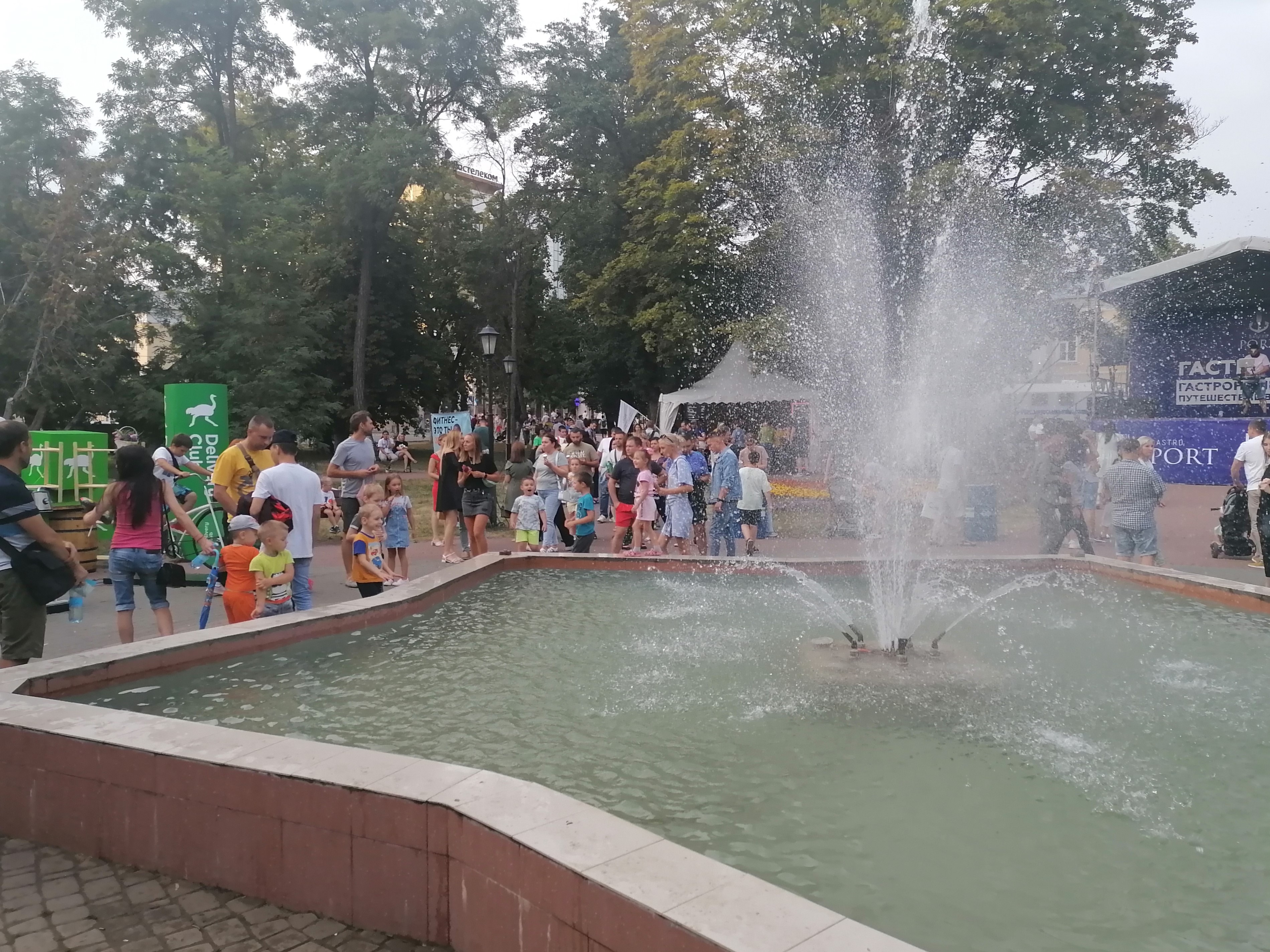 Поблизости, в сквере Ленина, можно было перекусить, покрутить педали. Дети, как обычно, окружили фонтан.
