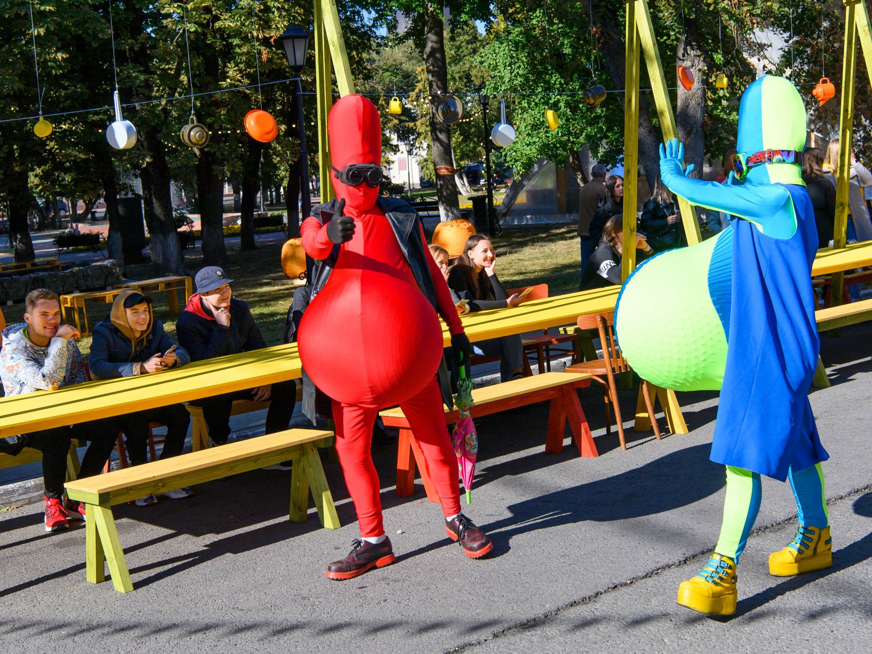 Детям в течение всего дня не давали скучать аниматоры и атмосферные Пузаны, клоуны Кисель и сказочные персонажи Коржик и Карамелька.