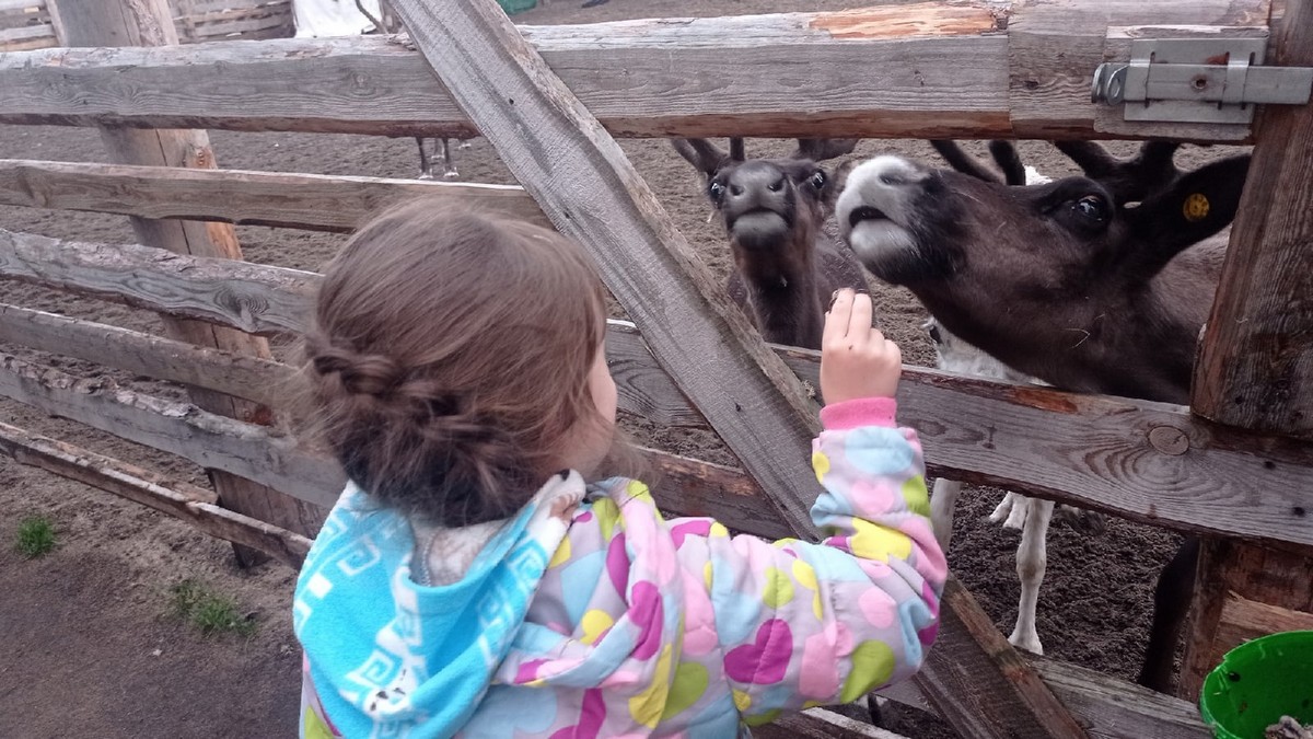В парке посёлка Териберка Варя впервые увидела настоящих оленей.