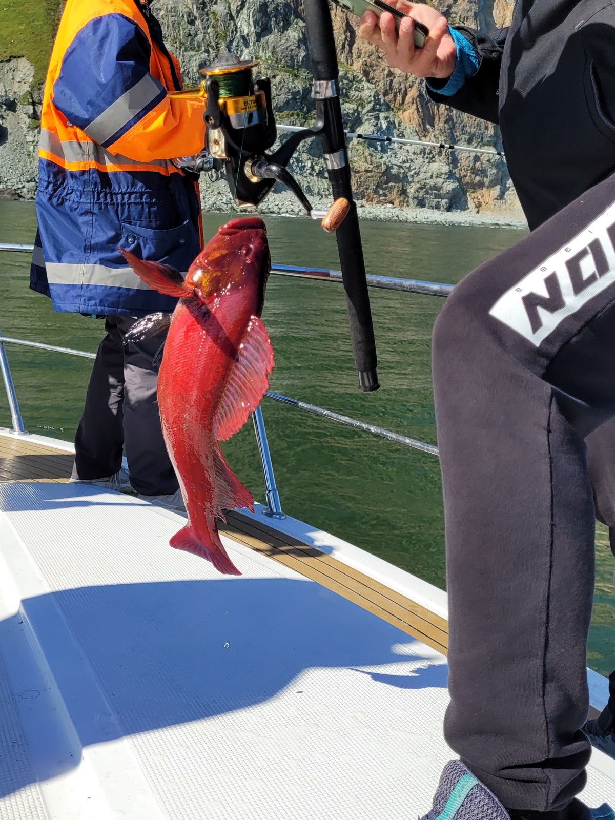 Морская прогулка у нас была весь день, с утра до вечера. Ловили рыбу в Тихом океане: окунь, ленок, яркие, с красивыми плавниками. Ребята два ведра за час наловили. Уху сварили, и ещё пожарили на ужин.