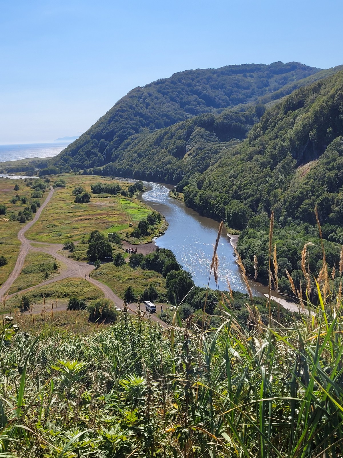 А вечер мы провели в бухте Тихой на Охотском море. Там с ума сойти какая красота! И воздух потрясающий. Дышишь и не веришь, что так можно дышать. И если горы чем-то похожи на крымские, то воздух другой. Мы купили свежесваренного краба. Расположились в бухте на камнях и отметили годовщину свадьбы. Краб был даже с икрой. Таксист научил нас разделывать его. Это, кстати, не так легко, краб довольно жесткий, разламывать тяжело. Но мясо – нежнейшее.