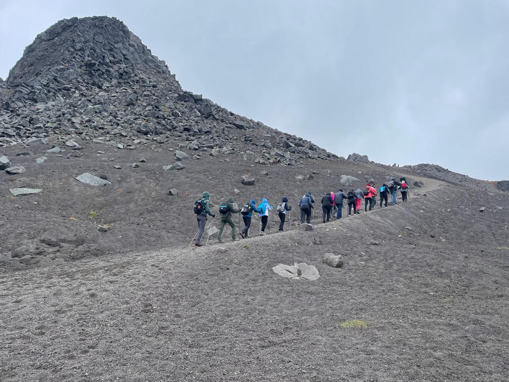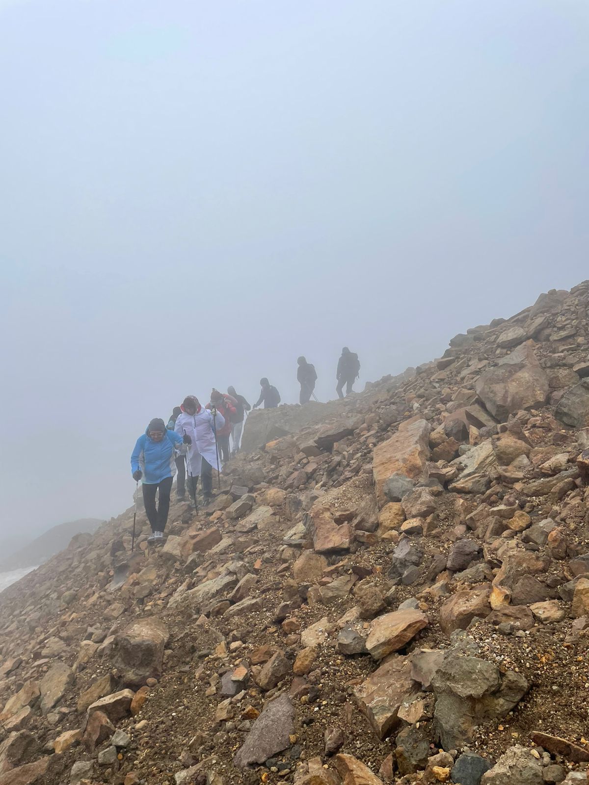 - До места, с которого начинается восхождение, мы ехали на вездеходе с высокими колесами по камням кальдеры. Было такое ощущение, что это Луна, неземные пейзажи. А потом поднимались в тумане, и пятый человек за нами уже не был виден.