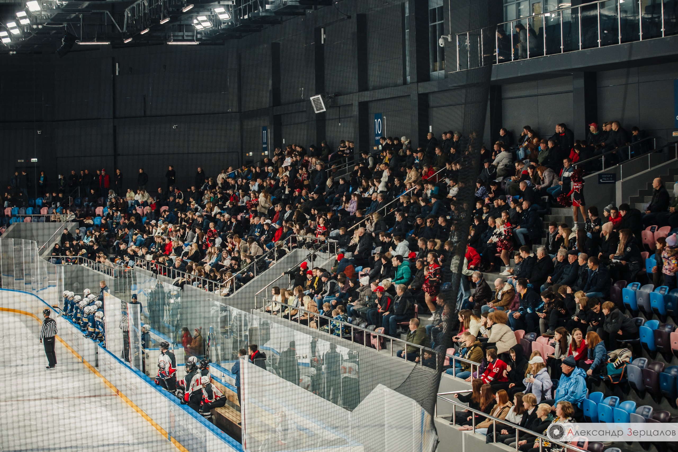 Калужане заполняют дворец спорта на хоккее так, что свободныъ мест совсем немного.