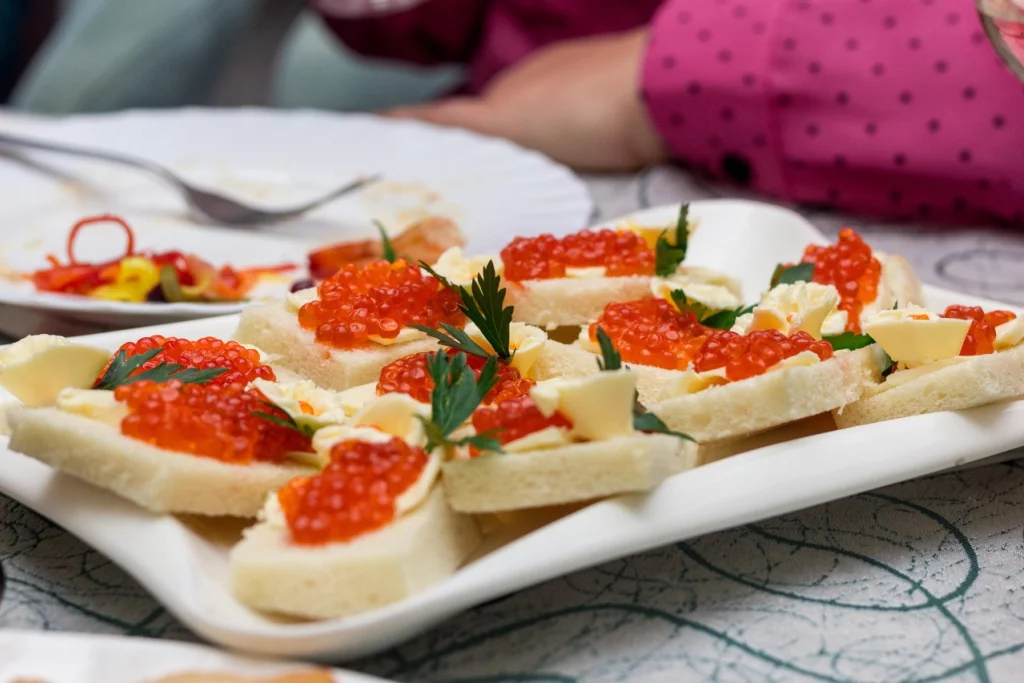 ВИП-меню: Бутерброды с черной икрой (100 граммов).