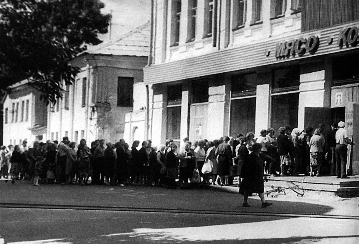 Если очередь в магазин растянулась по улице, значит товар выкинули. Сразу занимаешь и скорее - за родственниками. В некоторых магазинах продавцы прямо в зал выкатывали тачку с нарезанной колбасой, завернутой в серую бумагу, и всё хватали, без разбору, лишь бы хоть какой кусок ухватить.