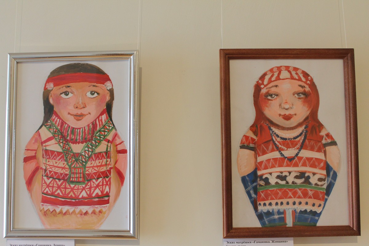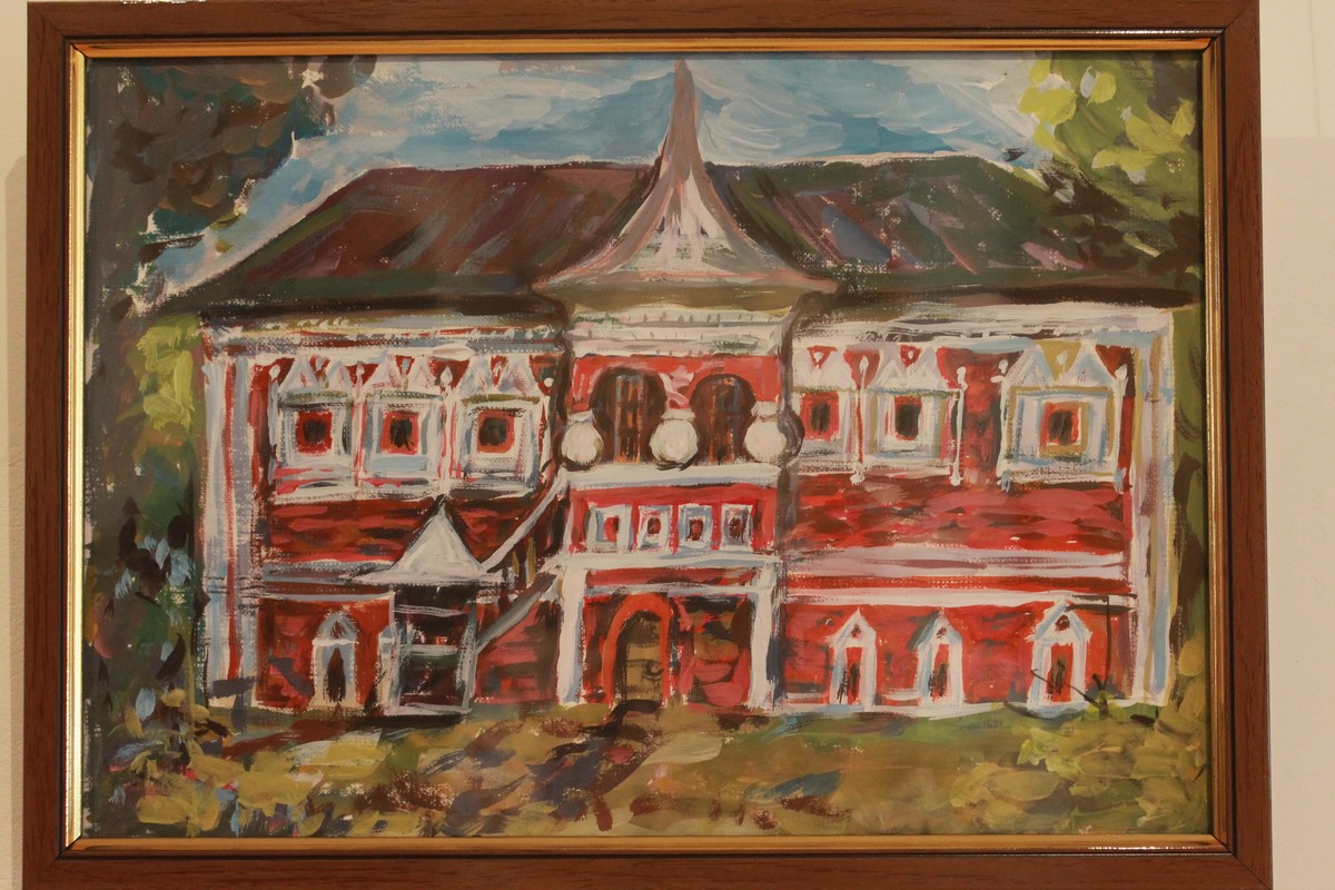 Теперь у неё постоянная связь с Палатами Коробовых. Сейчас здесь проходит выставка картин Ирины «Влюбленная в Калугу». Можно увидеть «Калужское утро», «Дом в Завершье», эскизы матрешки «Гамаюнка. Девушка» и «Гамаюнка. Женщина».