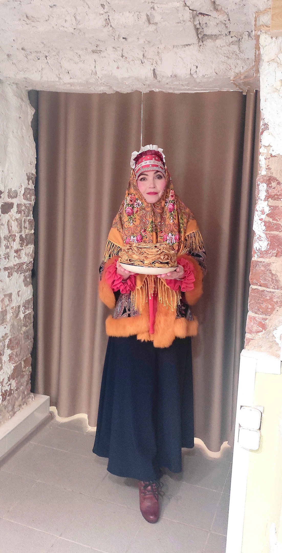 - Я брала и ХIХ век, и 30 годы ХХ века, и 50-е - попыталась сыграть мальчишку-школьника, которому преподавал Булат Окуджава. Надела рубашку, брюки, кепку, - рассказывает Ирина. - Часто изображаю купчиху, как бы гамаюнку (гамаюнщиной называли 17 деревень на правом берегу Оки с центром в с. Ромадановское, в которых были свои традиции и этнические особенности).