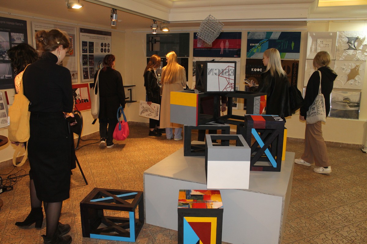 Экспозиция очень насыщенная. Креатив студентов удивляет и нас, педагогов, и дизайнерское сообщество области.Студенты работают в разных направлениях, это и графический дизайн, и дизайн интерьера, дизайн среды.