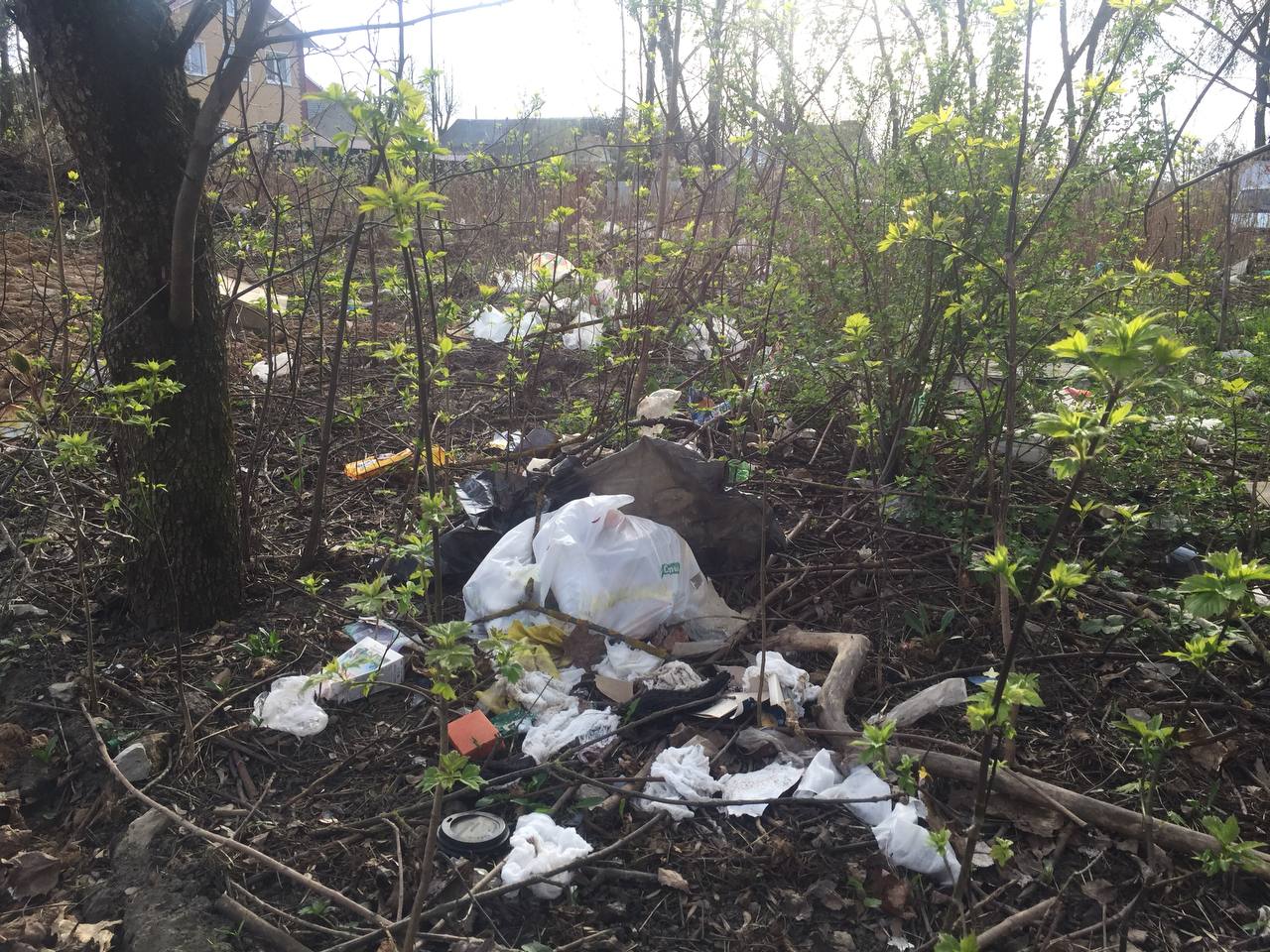 Ветром заносит на эту свалку мусор и с соседней давным-давно переполненной контейнерной площадки. Выросшие за несколько лет кусты и деревца тормозят легкие пластиковые мусорные пакеты и прочий мусор. В общем, налицо явное запустение.