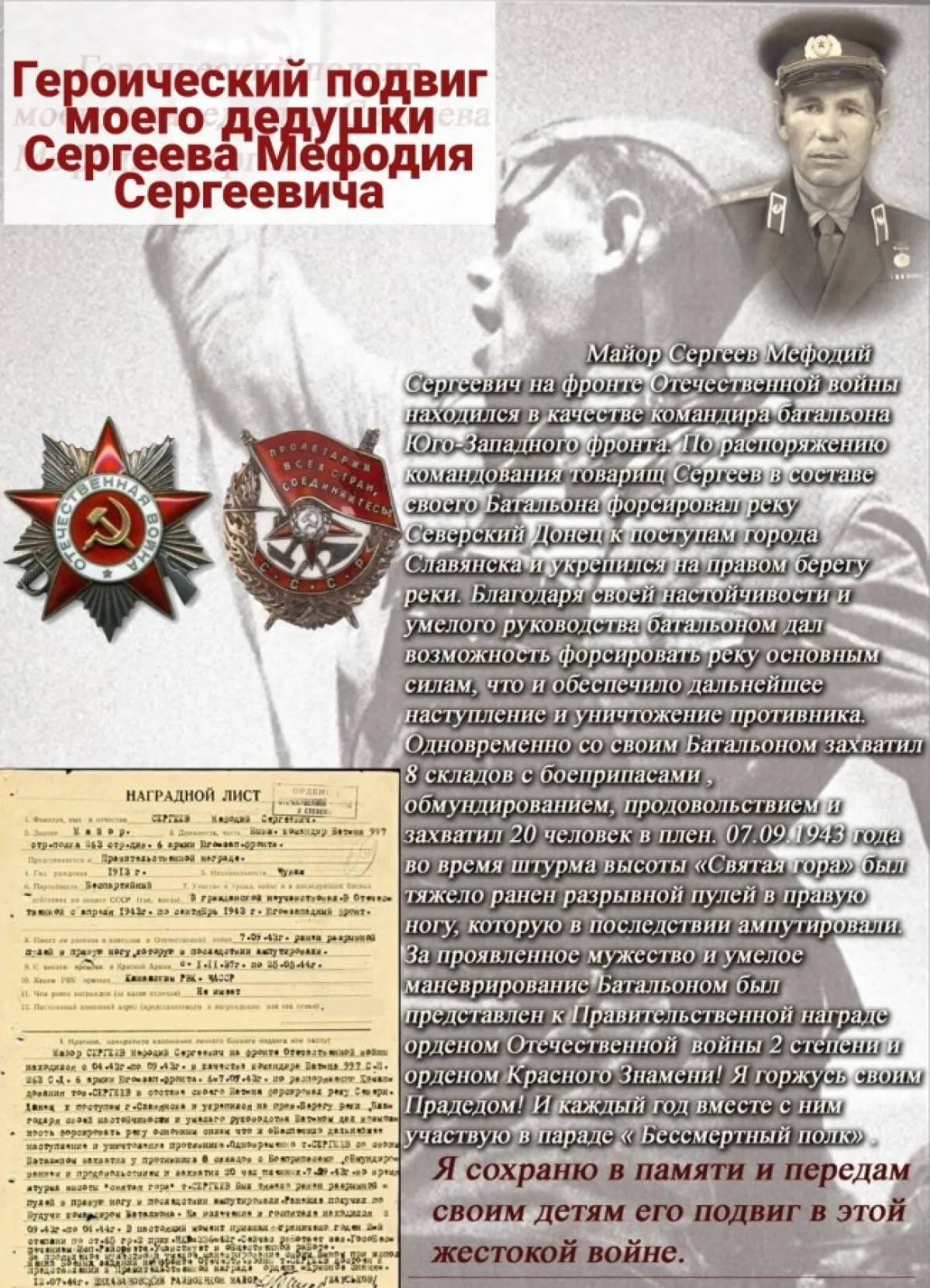 Бессмертный полк.мой дедушка-Сергеев Мефодий Сергеевич.разведчик,майор в отставке.служил в одном полку с Брежневым Л.И.