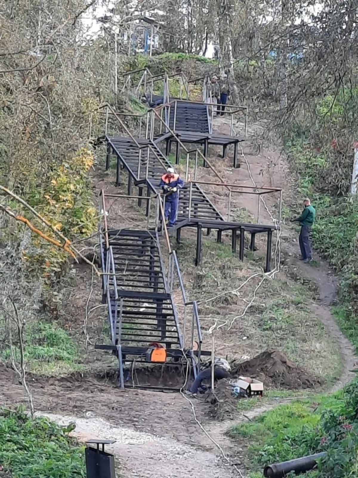 Сейчас там монтируют металлические лестницы и спуски на пешеходных маршрутах.
