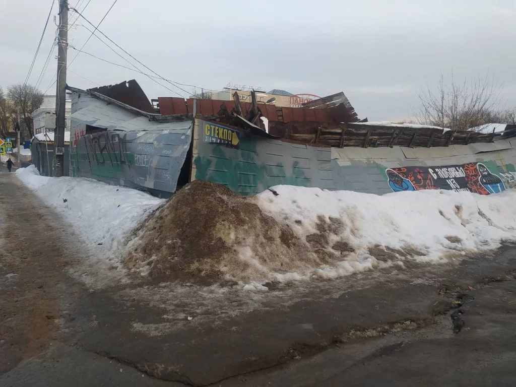 Строение на улице Достоевского разрушилось под тяжестью снега в конце февраля.