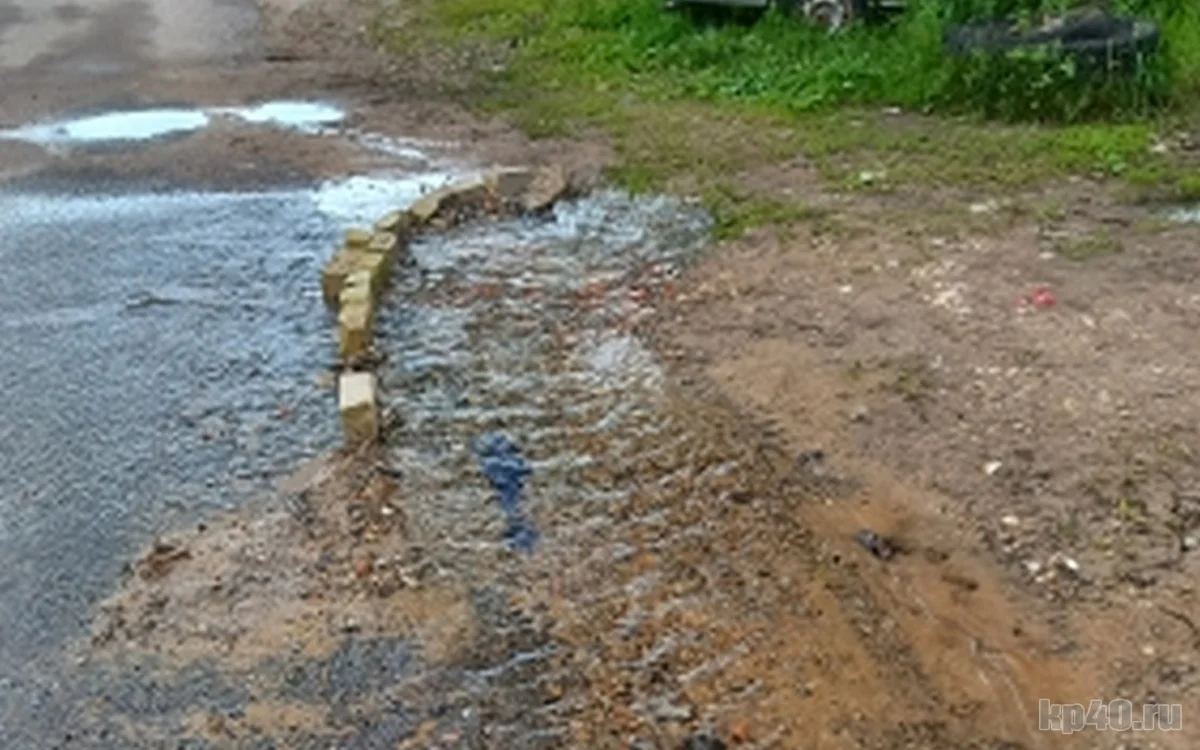 - Прорвало 10 дней назад водопровод в 30 метрах от места зимнего прорыва, - рассказал калужанин. - Водоканал опять никак не реагирует. Люди уже отгородили фонтан кирпичиками, чтобы поменьше шла вода во дворы.