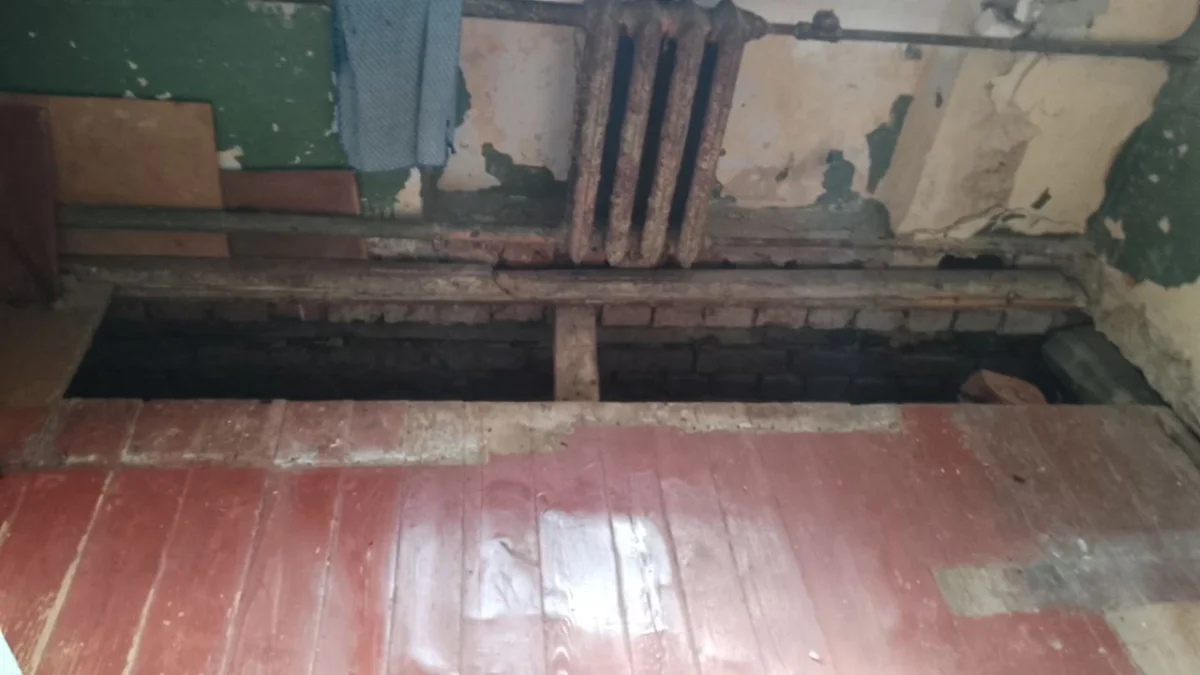 В его квартире нет тепла и воды, а стены и пол прогнили. Также грозит обрушиться пристройка.