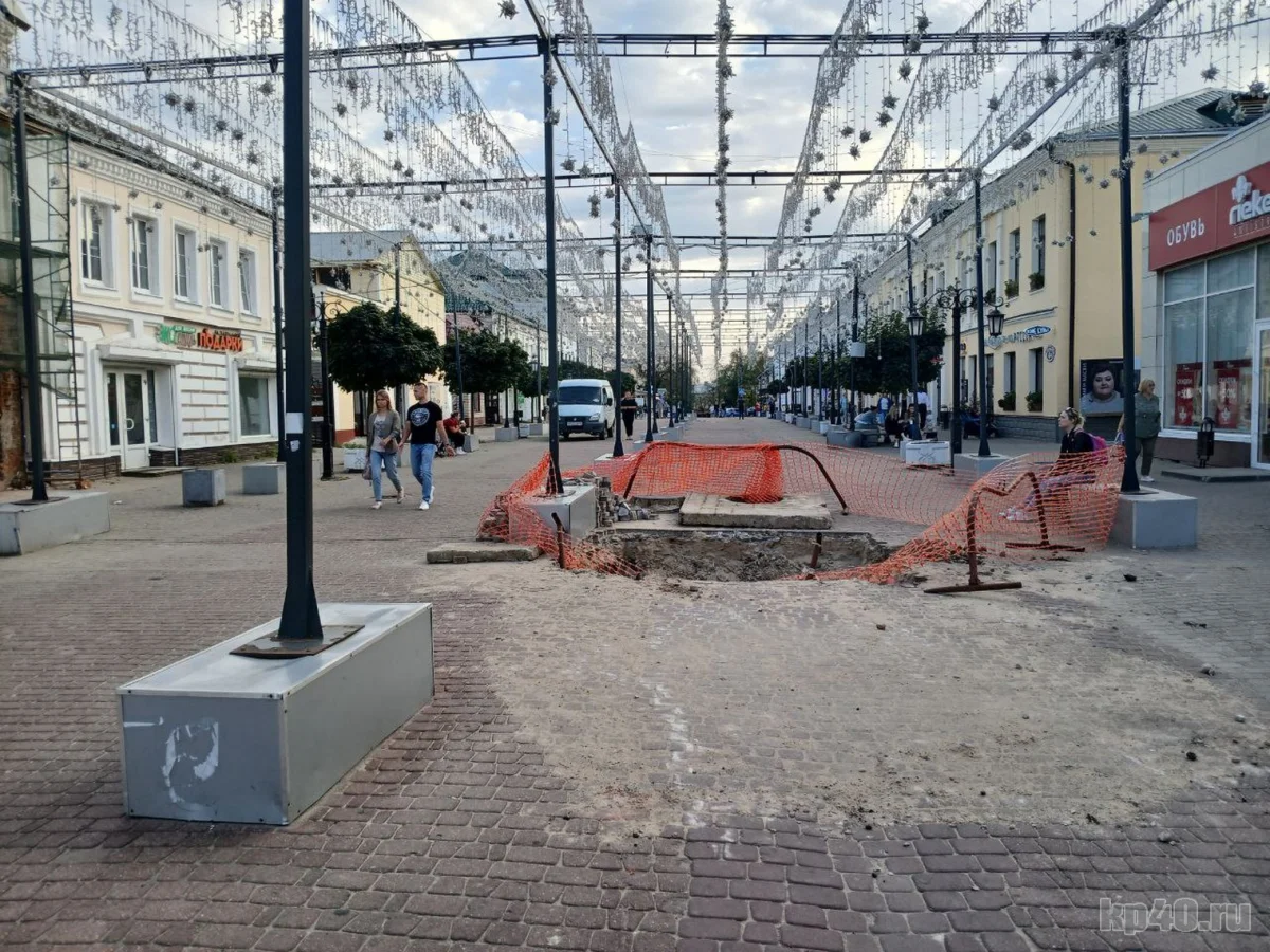 В Калуге раскопали пешеходную часть улицы Театральной