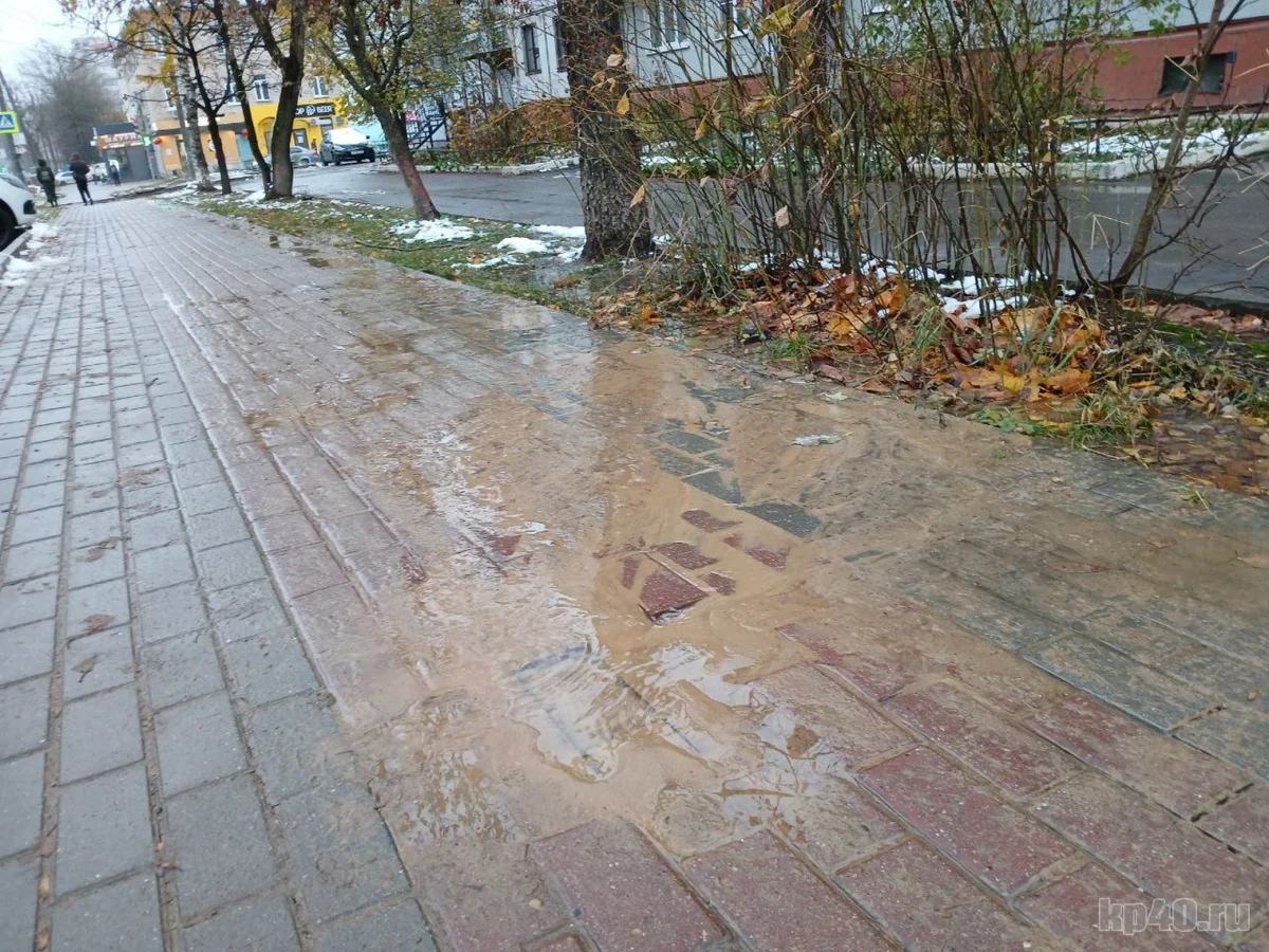 В Калуге прорвало трубу с холодной водой на улице Тульской