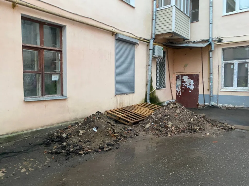 Фото в соцсетях опубликовал один из жителей дома №125 на улице Ленина, выходящего фасадом на Гостиные ряды и площадь Старый Торг.