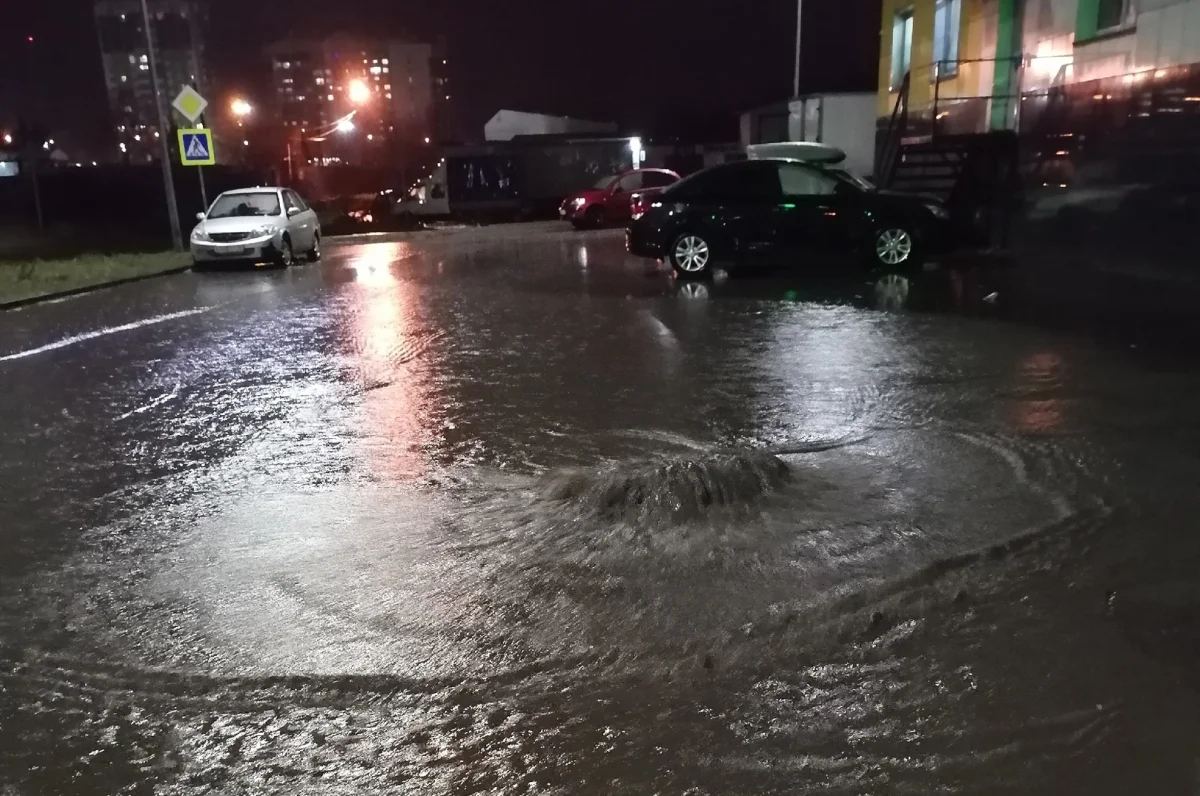 Вода бурным потоком вырывалась из канализационных колодцев.