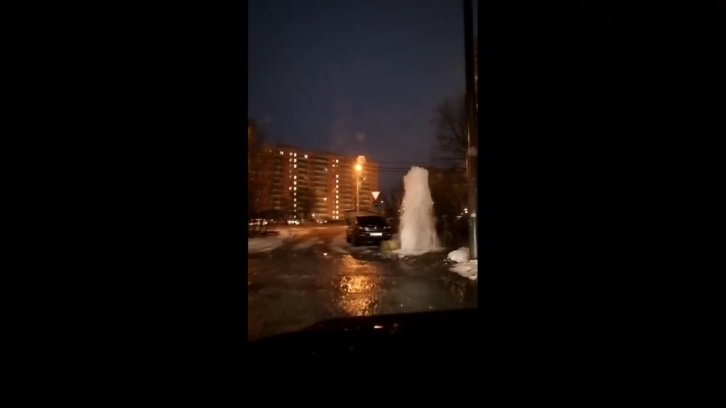 Вода вырывается из-под земли у дома №10а на улице Фомушина.