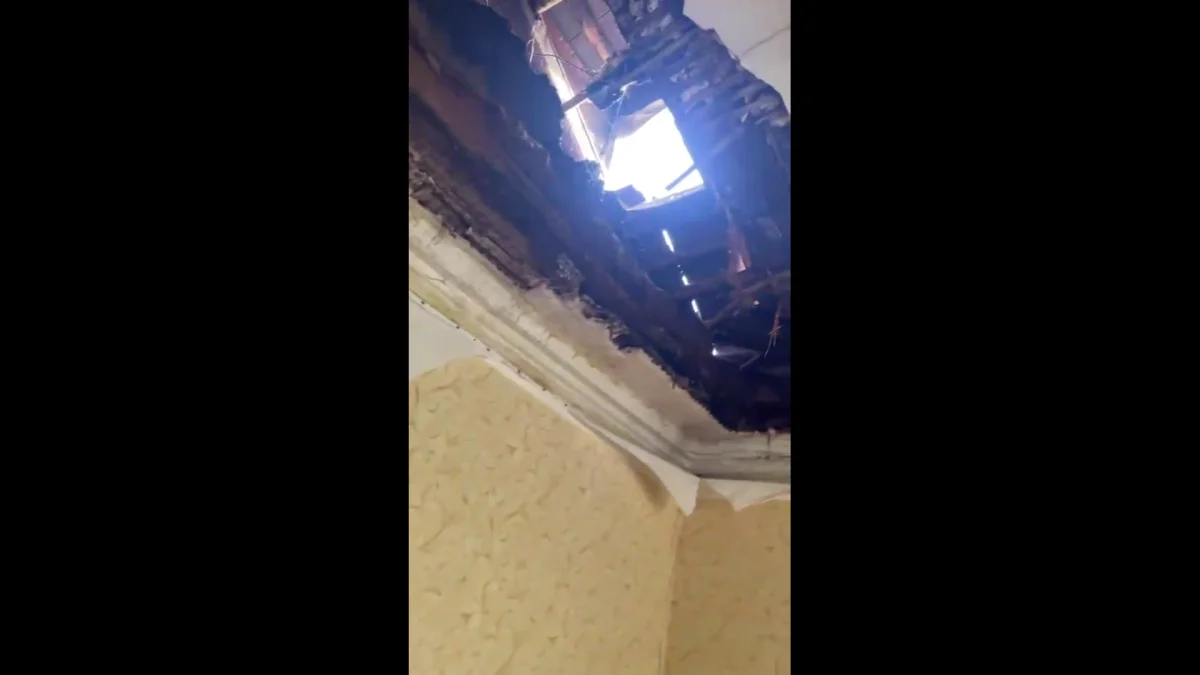 Из жилого помещения теперь видно небо через дыру в потолке и крыше.