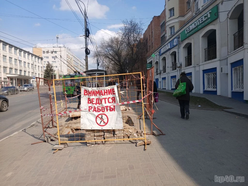 В Калуге раскопали тротуар на улице Гагарина