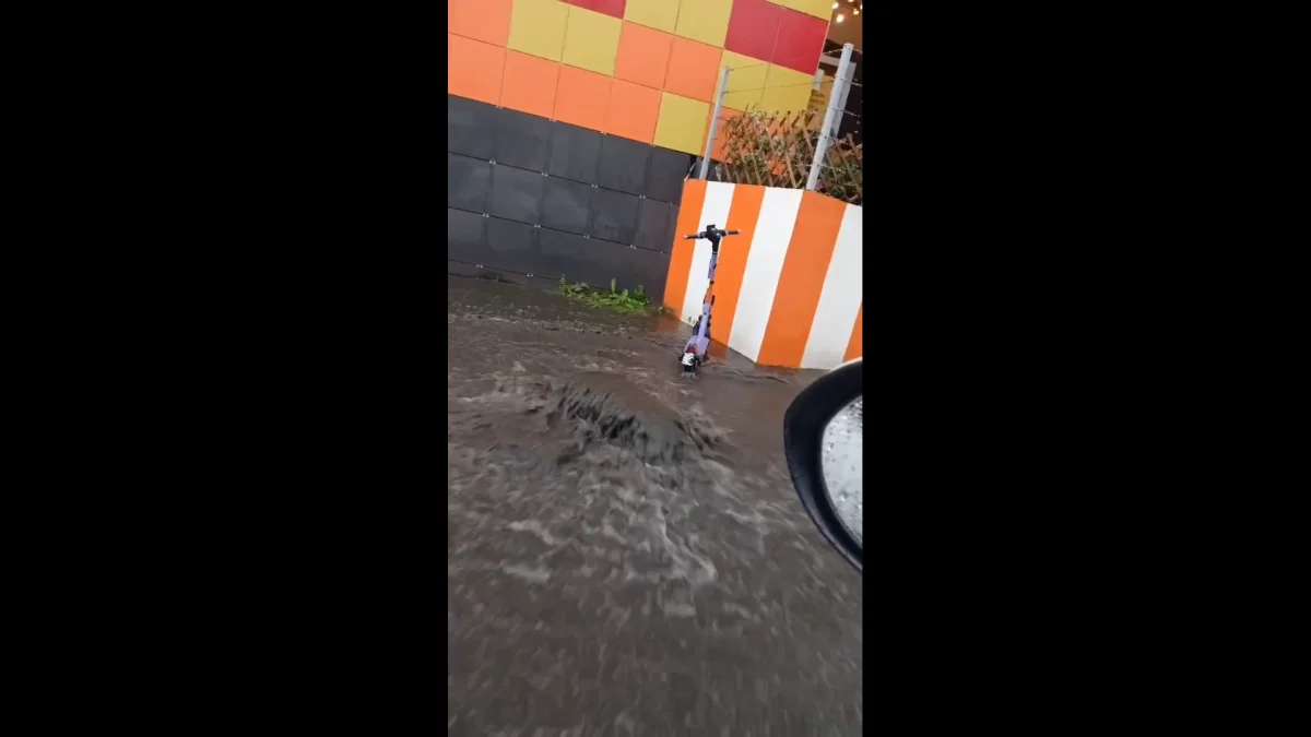 После дождя вода бурными потоками вырывается из канализационного колодца и растекается по окрестностям.