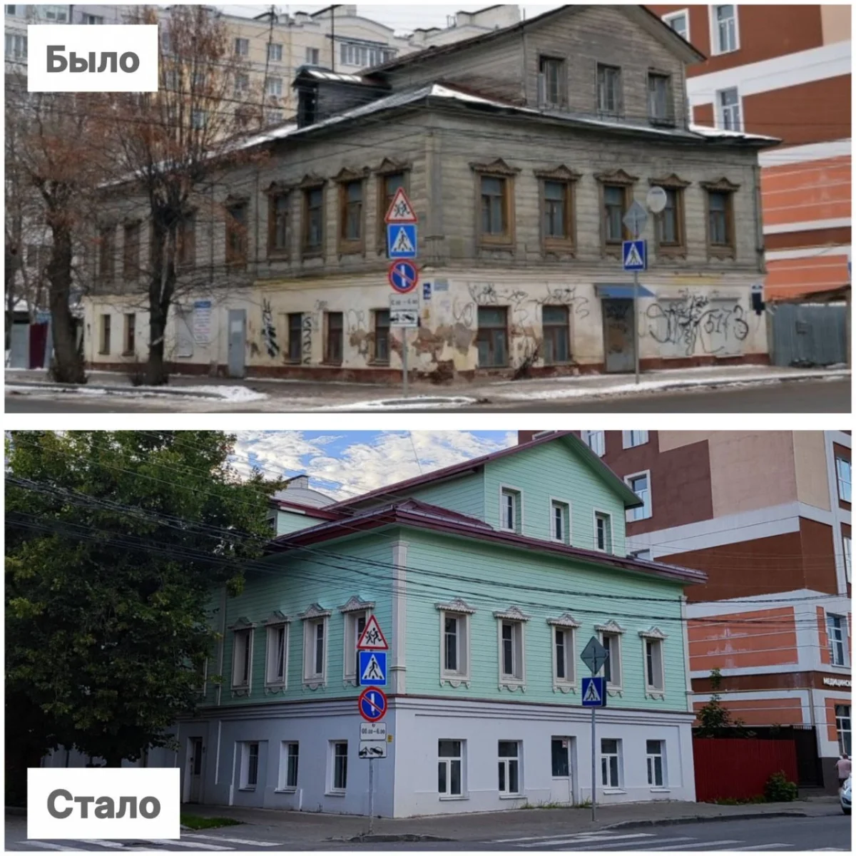 Работы проведены на фасаде Дома Капыриных, который расположен на улице Воронина, 14.