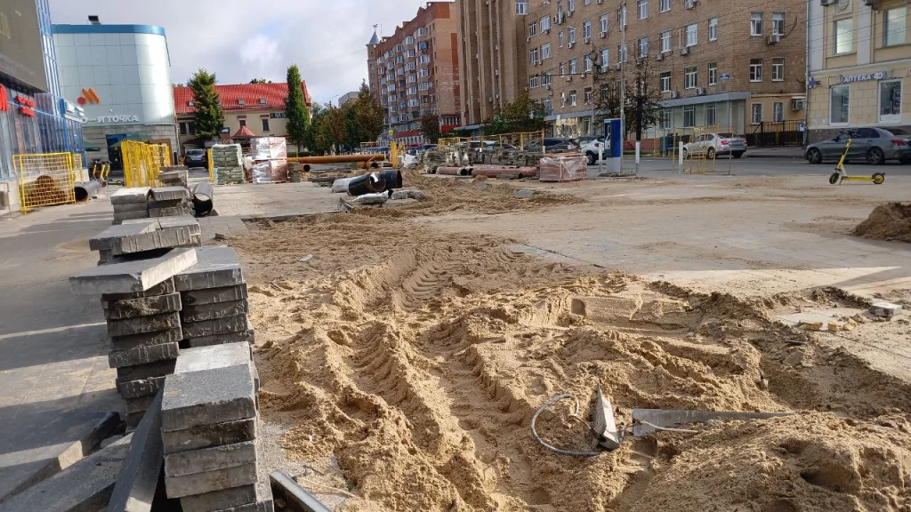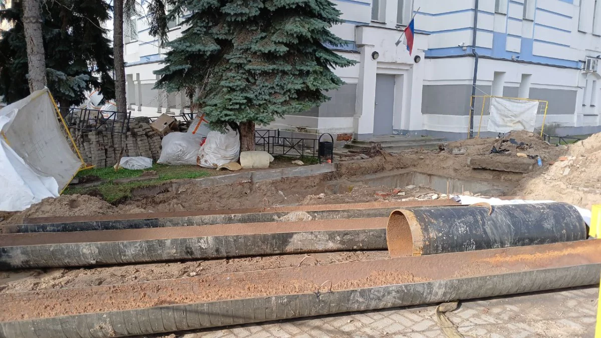 Замена теплосетей ведется в районе перекрестков с улицей Плеханова и сквером Мира.