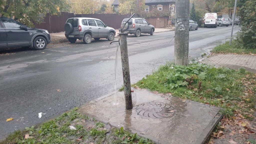 Протекла уличная водоразборная колонка, расположенная между домами №62а и №64.