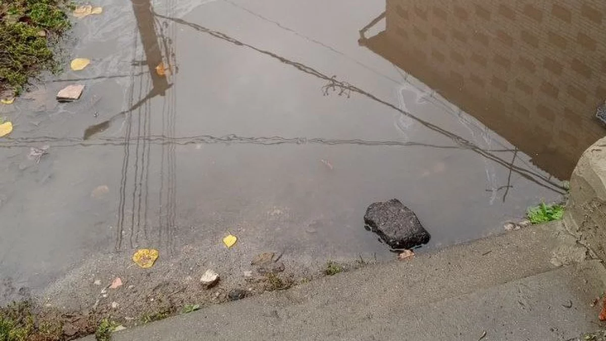 Дорога у торца дома на Московской в Калуге круглый год превращается в лужу