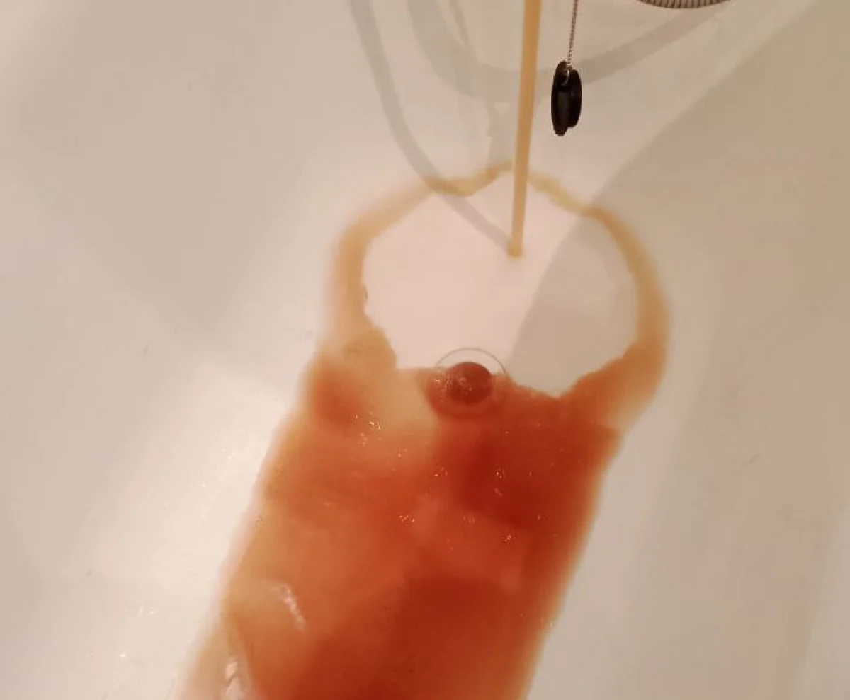 В Калуге на улице Тельмана вода раз в месяц становится красного цвета